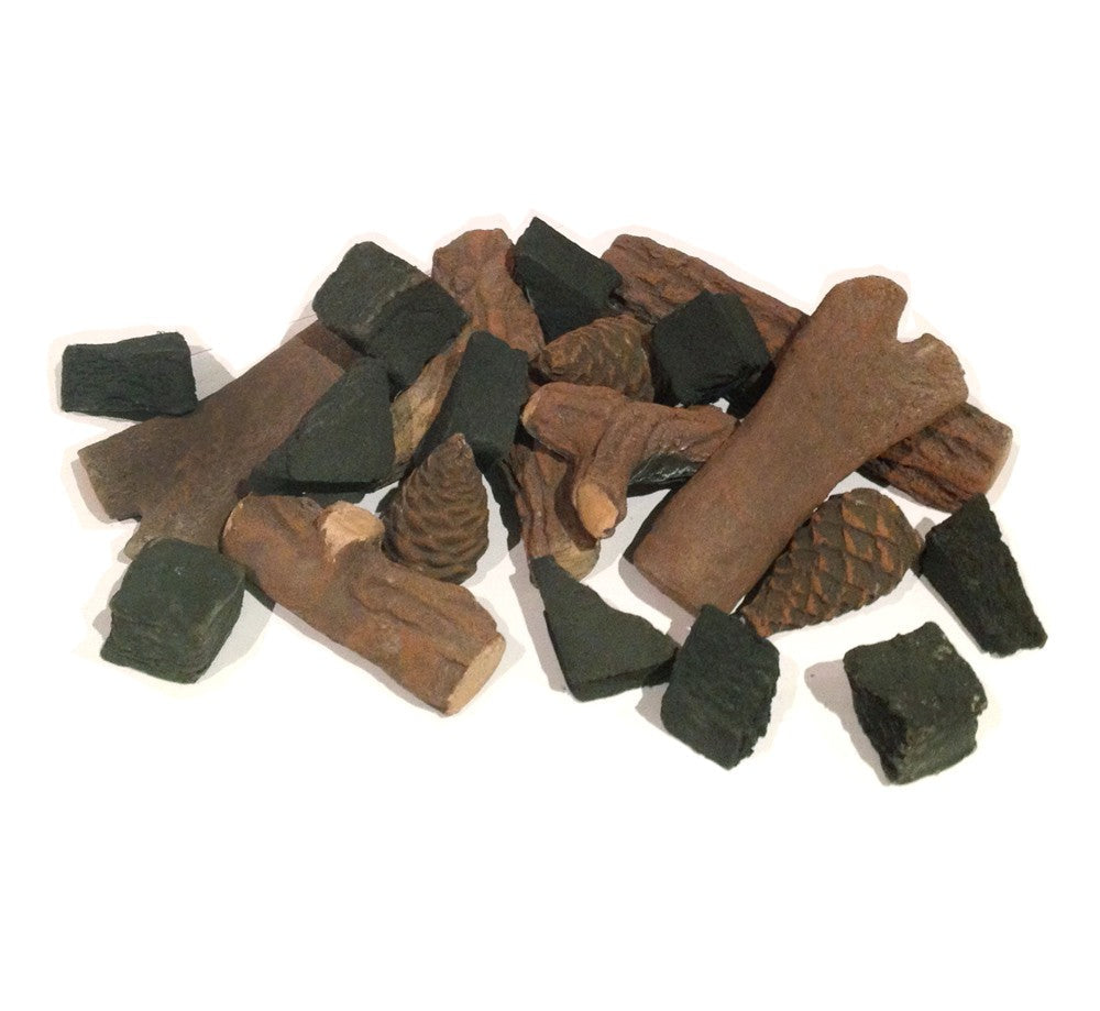 The perfect ceramic accessories to finish off your bioethanol fireplace. Carefully selected variation of logs, cones and coals.