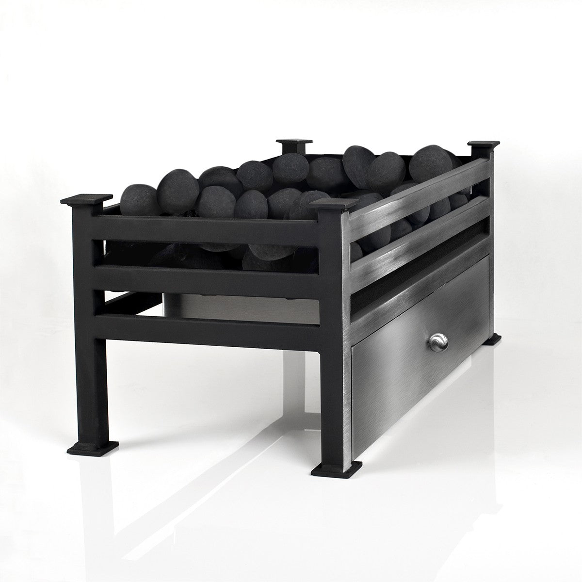 This fire grate is a perfect solution for old fireplaces and elegant mantelpieces with a large opening – classic and neutral in style it will perfectly blend with any decor and bring real flames into your home without the need of a working chimney or flue.