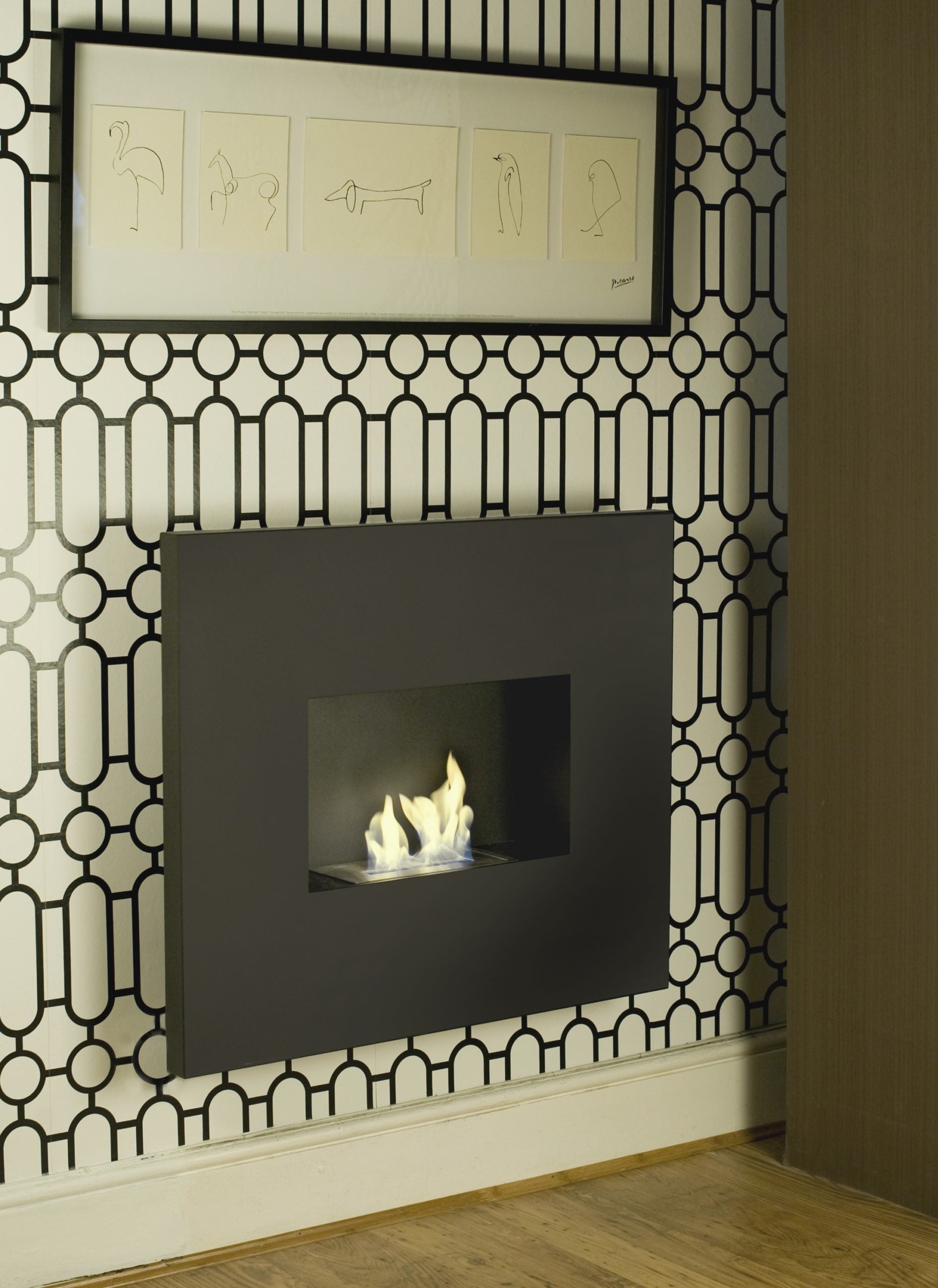ONYX Black Bioethanol Fireplace is a beautiful wall-mounted bioethanol fireplace. Smooth black graphite finish. Can be mounted straight on the wall (using screws provided) or recessed.