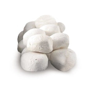The white pebbles 48 pieces is the perfect compliment to our CYLINDER White Modern Bioethanol Stove, CHELSEA Bioethanol Fire Grate in Polished Steel Finish, MONTAGU Polished Steel Grate