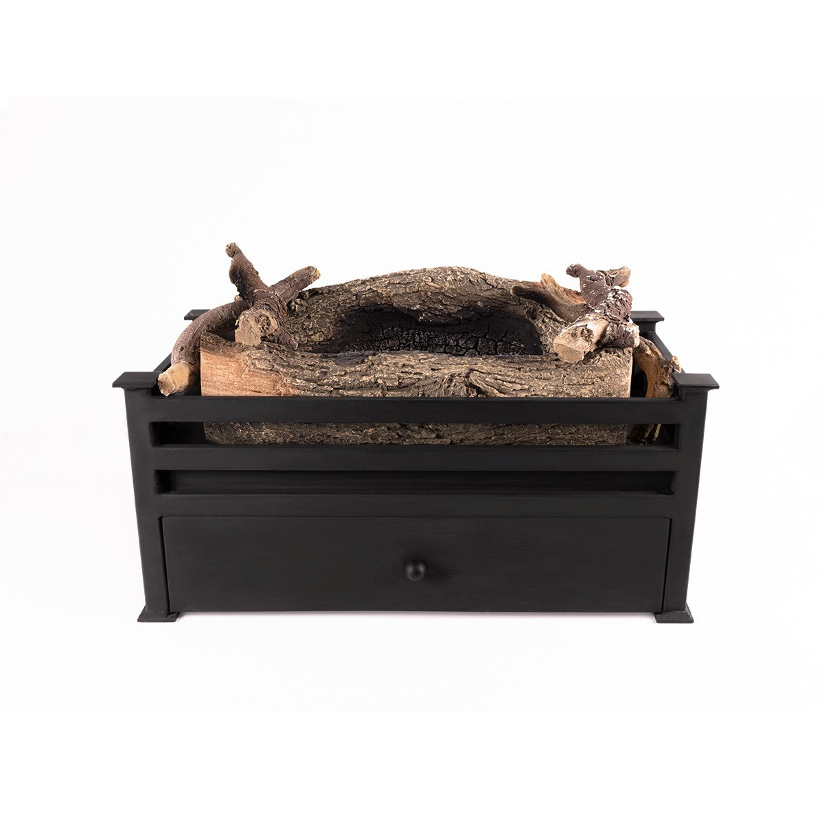 We have included 2 large Wildwood logs, individually crafted in high-definition concrete with hand-painted scorch marks for extra realism, and 4 branches from our exclusive Luxury Log range. With this new combination of accessories, we have been able to achieve a much fuller look, giving the perfect illusion of a real, roaring wood burning fire.