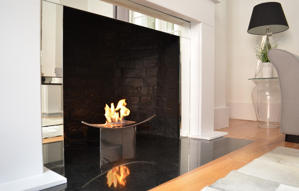 - Smooth polished steel Zen Bioethanol Fire body in Mirrored Finish